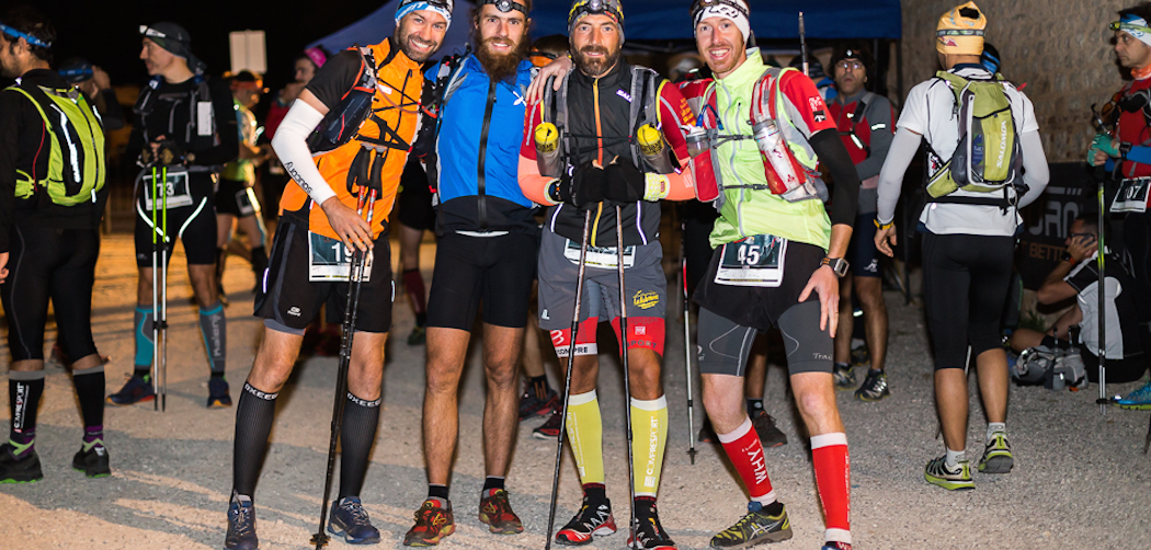 Alle 3 del mattino mentre una tromba intona un silenzio militare da pelle d’oca, armeggio impazzito con uno dei due bastoncini telescopici che non ne vuole sapere di fissarsi in posizione, “Fulmine della Notte” (classico mio compagno di avventura) mi sussurra di lanciarli al di là delle transenne, Claudio mi dice “Nooooooo 80 km senza bastoncini nooo” ultime note, musica OFF, lo speaker pronuncia “Quattro secondi al via”, Tre, Due, “Klik” bastoncino agganciato, Uno…….. Viaaaa!!!!!!!!