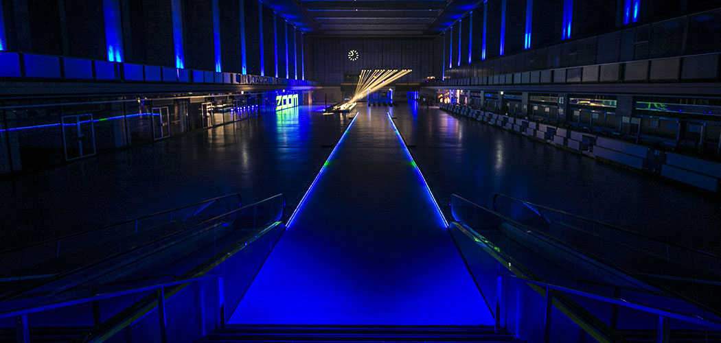 Siamo a Berlino, ma dove? Il vecchio aeroporto di Tempelhof, Berlino Est, dove si respira ancora aria di guerra fredda e spie russe che transitavano verso occidente (e viceversa, ovviamente). La cornice mette quasi in soggezione: una grande hall con un banco del check-in e il nastro per il trasporto bagagli dove sono installate tutte le scarpe della collezione Zoom. E un corridoio che porta alla pista di decollo.