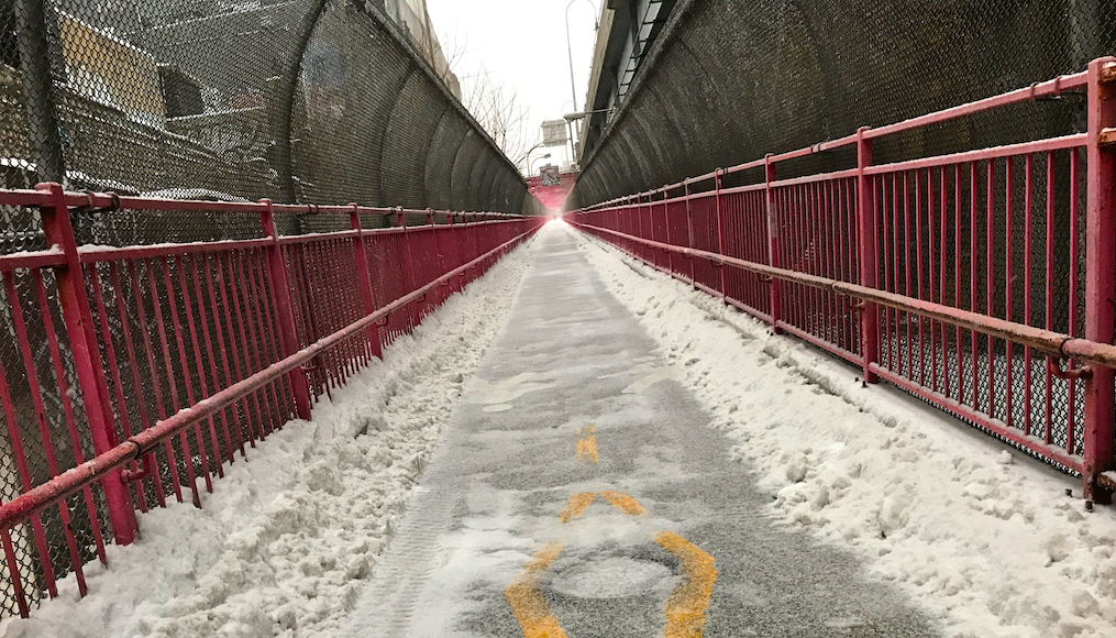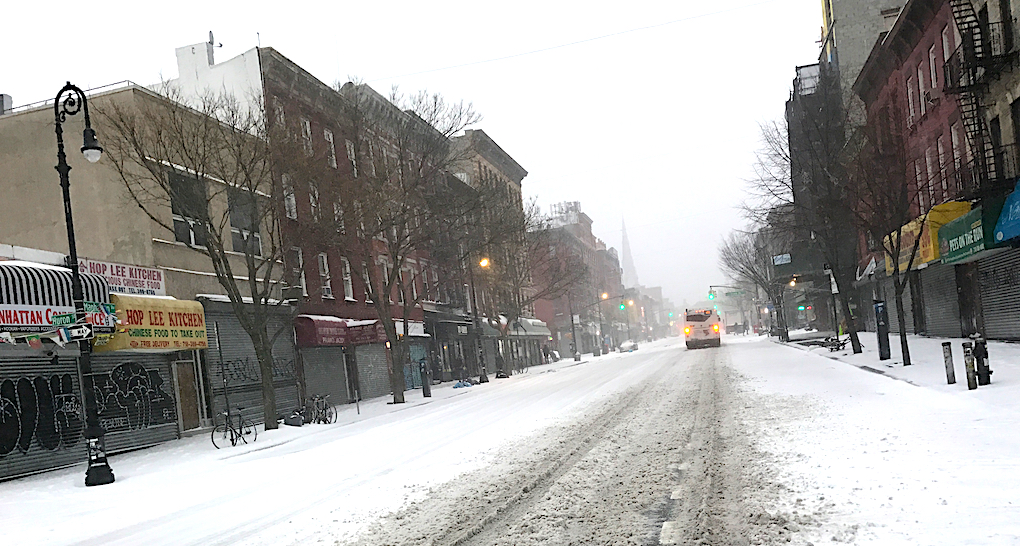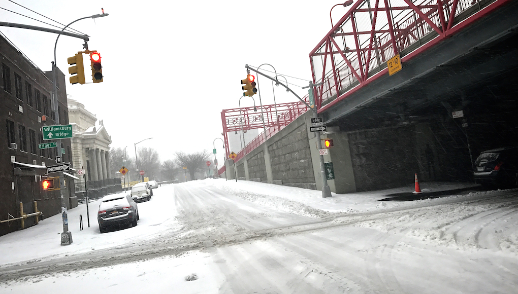 Arrivo al ponte di Williamsburg, uno dei miei posti preferiti a NY in assoluto, sono tentato di andare fino a Manhattan. Penso al vento sul ponte. Ci ripenso nettamente. Corro verso Metropolitan Ave. Comincio a vedere delle persone per strada. Passo davanti ad una immancabile stazione dei pompieri. Arrivo a McCarren Park sulla pista di atletica. O almeno SO che qui c’è la pista di atletica ma è completamente bianca. Continuo verso casa. Manhattan Avenue mi accoglie. Il vento aumenta. la neve pure. Faccio slalom sui marciapiedi per evitare le botole di metallo che vorrebbe dire iscriversi immediatamente al Guinness per la scivolata del secolo. Sono quasi a casa. Ancora neve. Altro vento (ovviamente contro, ne esiste uno a favore nella corsa?).