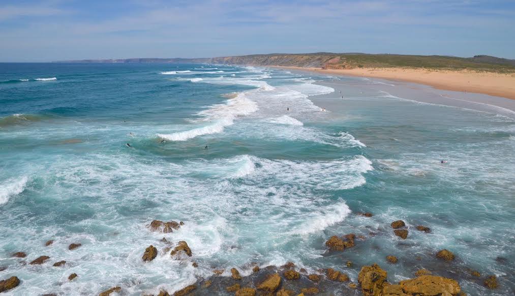 Scoraggiata dal tempo, dopo una colazione a base di caffè, mandorle e uova, sono tornata a letto. Il vento ulula al di là delle persiane di legno azzurro di questa graziosa pensione di un paesino di 300 anime sulla costa atlantica e rovina i miei piani per il trail running di questa mattina. Sbuffo, indecisa sul da farsi. Guardo le previsioni meteo sperando di trovare un’ora della giornata senza vento, ma nulla: il vento continuerà a soffiare a 20 km/h per tutto il giorno… indi per cui uscire ora o dopo non fa alcuna differenza! E sia! Mi preparo, esco, prendo la strada sterrata a sinistra della pensione e mi inerpico su per le collinette lungo la costa. Folate di sabbia e terra picchiano contro le gambe: noncurante, continuo a macinare km su e giù tra le rocce di questa strada polverosa. Il paesaggio è spettacolare, la giusta ricompensa per aver deciso di uscire nonostante il vento. La terra giallo chiaro su cui corro lascia posto ai lati a sassi grigio-bianchi tra cui spuntano arbusti colorati di foglie e bacche. Qua e là qualche cespuglio più verde ospita secchi fiori gialli che risaltano sulle striature rosse delle rocce. E sullo sfondo, a pochi passi, magnifico, l’oceano blu con le sue onde tumultuose che si infrangono bianche sui faraglioni e le rocce a picco. Due lacrime sugli zigomi mi suggeriscono di offrire al vento meno attrito possibile: tengo la testa un po’ bassa e guardo le punte delle scarpe spingere sulla strada in salita e sollevare polvere ad ogni passo. Chissà quanto tempo ci è voluto ai pescatori portoghesi per tracciare queste stradine lungo la costa atlantica che oggi sono conosciute come Rota vicentina e sono battute da hikers da tutto il mondo. Difficile che avessero previsto il trail running tra i possibili usi di questi percorsi, ma come resistere quando è così facile? Bastano un paio di scarpe e un po’ di forza di volontà per soddisfare la passione per la corsa ovunque si vada, con o senza vento!