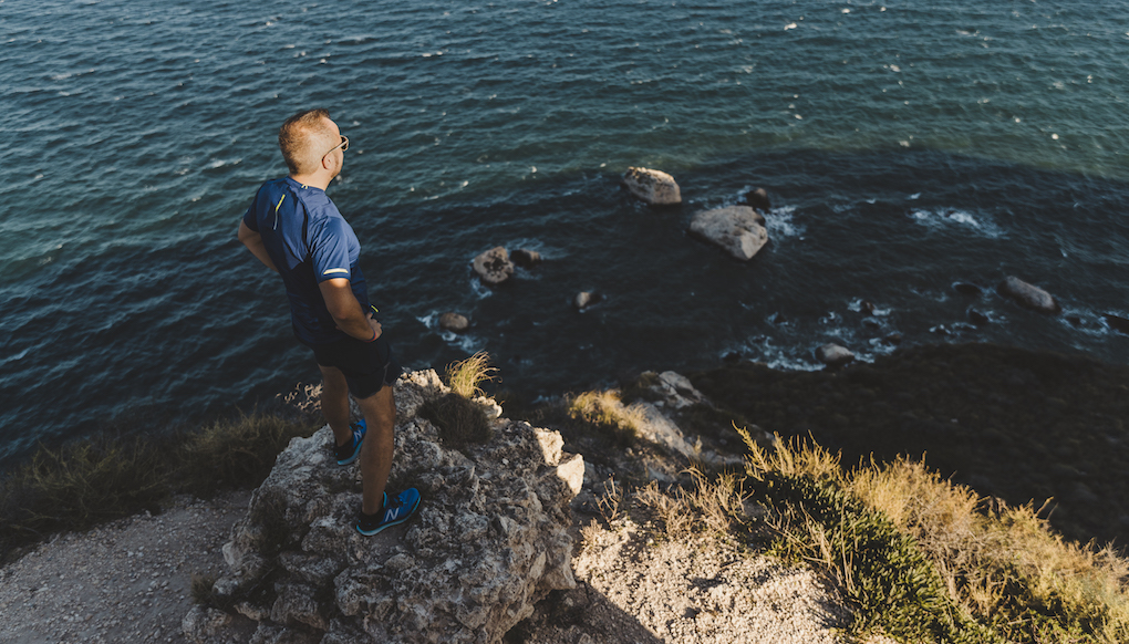Ma se non bastasse tutto questo, immagina che lo scenario naturale che lo incornicia prevede il mare da una parte e il rilievo montuoso della Sella del Diavolo a sud. E che visto dall’alto è come se un immenso abbraccio accogliesse il mare e chi lo solca. Per apprezzarlo però bisogna salire in alto. Inutile dire che noi l’abbiamo fatto (e non siamo stati traditi dalle New Balance 880 e 1080, che sulla carta sono da strada). Se la vista dalla strada è già notevole, dall’alto è superlativa: si vede lì giù Marina Piccola e poi la curva di tutto il Poetto, disegnata da un gigantesco compasso che si è fermato a Quartu Sant’Elena. La Sella del Diavolo è un avvallamento da cui si può vedere il Poetto a nord e il mare infinito a sud. Si sale ancora un po’ fino al punto più alto e si respira il vento godendo del sole che tramonta.