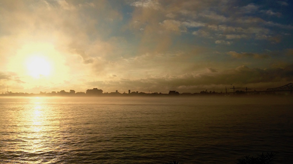 Oltrepasso delle rotaie del tram ed entro in un parco che dovrebbe costeggiare il Mississippi, ma del fiume neanche l’ombra. Mi chiedo se ho sbagliato direzione, ma come mi avvicino meglio alla pista pedonale del parco, mi rendo conto che il Mississippi è avvolto in una fittissima nebbia mattutina che non lascia vedere né l’inizio né la fine del fiume. È uno spettacolo spettrale: la nebbia è talmente fitta che alcuni battelli ormeggiati a riva lasciano intravedere appena appena la sagoma e se mi guardo a destra e a sinistra, non vedo nient’altro che nebbia. Prendo una direzione a caso e corro lungo la pista pedonale che costeggia il fiume: non si vede al di là della punta del naso e i pochi runners che incrocio escono dal grigio fitto della bruma quasi come fossero fantasmi. Tra le sagome che si intravedono in mezzo alla nebbia ne riconosco una molto familiare e particolarmente benvenuta stamattina, quella del sole: fa fatica a farsi largo tra la nebbia, ma ho fiducia che prima o poi ce la farà e dissolverà questo strato di vapore acqueo che non mi lascia indovinare quanto sia largo il Mississippi. Proseguo a ritmo leggero, pensando che non è esattamente il paesaggio di cui ho bisogno per rinfrescare la mente e rimettermi in sesto, ma a poco a poco lo sforzo fisico si fa sentire e la fatica entra in circolo, svegliando muscoli e cervello.